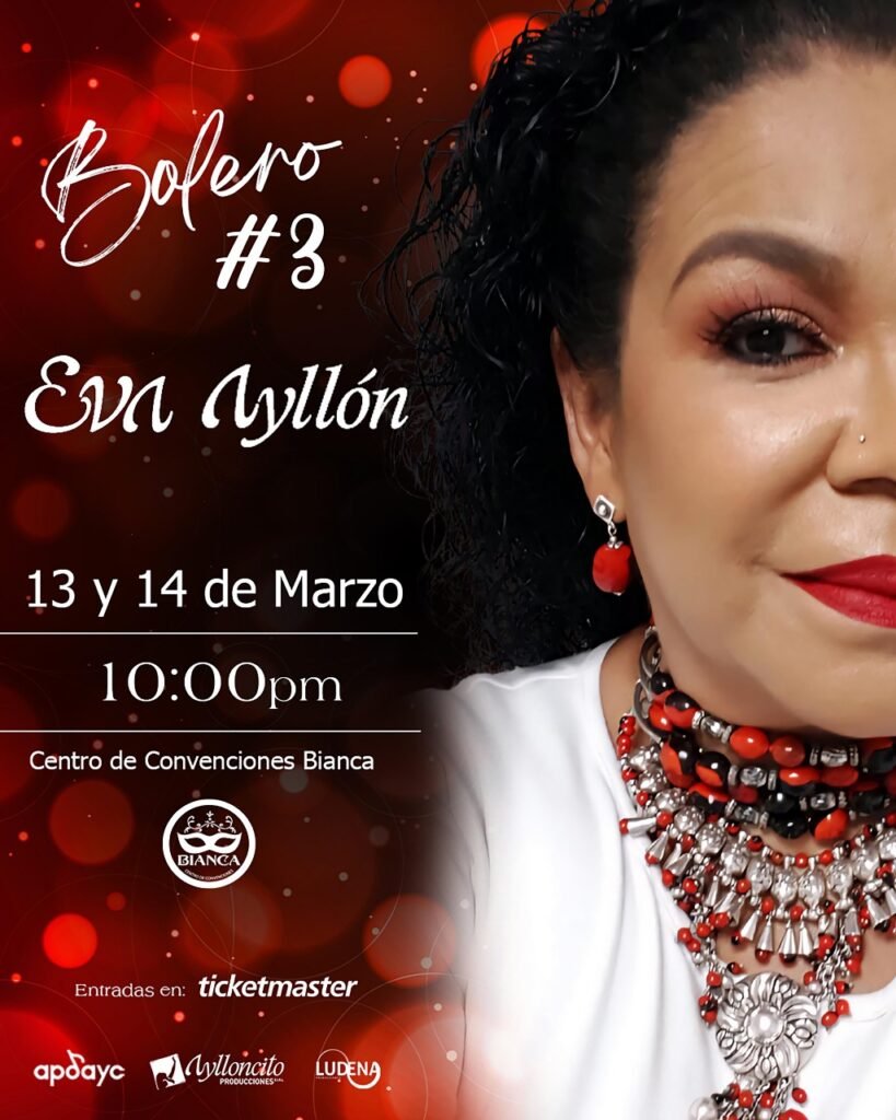 Lima.– Eva Ayllón, una de las voces más emblemáticas de la música peruana y latinoamericana, anuncia su esperado regreso a los escenarios en este 2026 con “Bolero #3”, un espectáculo de formato íntimo dedicado íntegramente al bolero. La cita será los días viernes 13 y sábado 14 de marzo, en el Centro de Convenciones Bianca, en Barranco. Las entradas ya se encuentran a la venta a través de Ticketmaster.