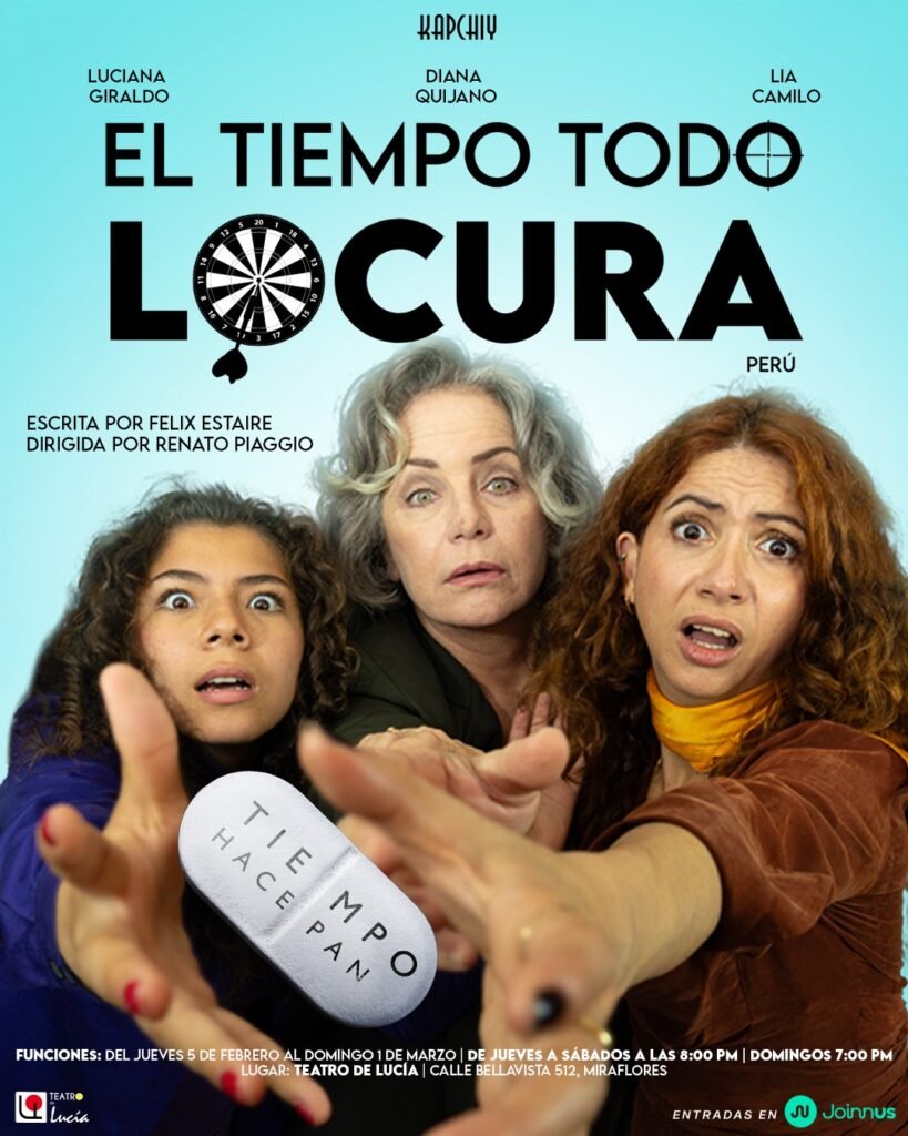 “El tiempo todo locura” es una divertida obra que juega con el tiempo, las decisiones y los vínculos familiares desde el humor absurdo y la inteligencia escénica. Escrita por Félix Estaire y dirigida por Renato Piaggio, la propuesta llega por primera vez al Perú como una alternativa distinta de la cartelera.