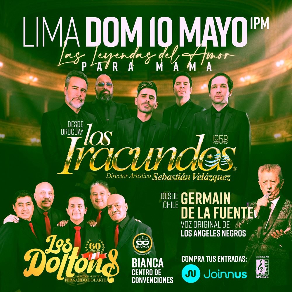 En el mes de MAYO llega el mejor show dedicado a las reinas del hogar y de nuestros corazones, las “MAMÁS”. Un show denominado “LEYENDAS DEL AMOR PARA MAMÁ”. Entradas a la venta en Joinnus.com