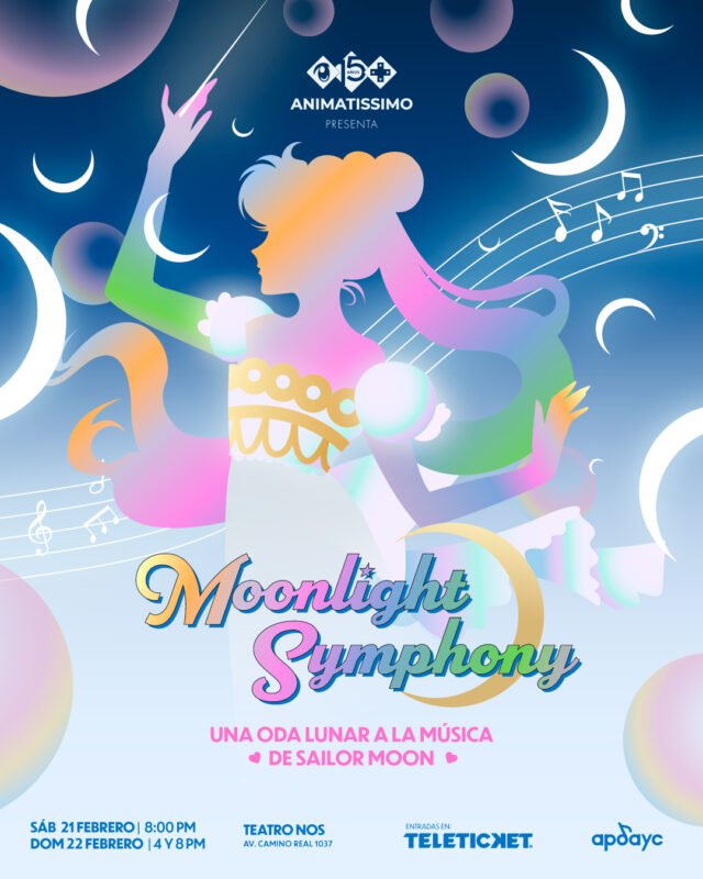 ANIMATISSIMO abre su temporada 2026 con “Animatissimo Moonlight Symphony”, un concierto sinfónico inspirado en el universo musical de Sailor Moon, que se presentará el sábado 21 de febrero a las 8:00 p.m. y el domingo 22 de febrero a las 4:00 p. m. y 8:00 p. m. en el Teatro NOS. La propuesta reunirá a 40 artistas en escena —orquesta sinfónica, banda de rock y cantantes— y las entradas ya se encuentran a la venta a través de Teleticket (https://teleticket.com.pe/moonlightsymphony)