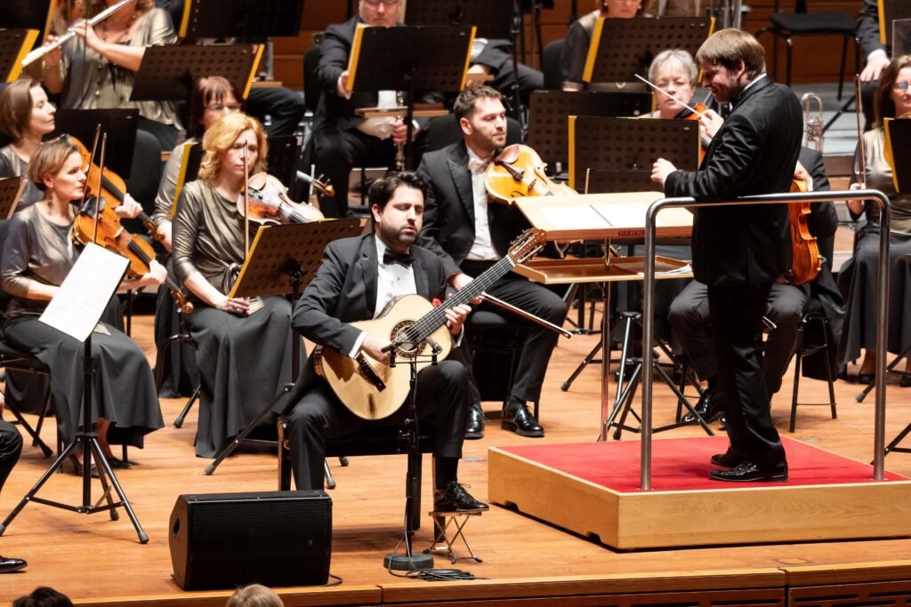 El “Concierto de Aranjuez” ocupa un lugar central en la carrera de Aguirre. En Nueva York fue el primer intérprete de su instrumento en más de dos décadas en llevar esta obra al Stern Auditorium del Carnegie Hall. También la ha presentado en escenarios como el Concertgebouw y la Elbphilharmonie, confirmando una lectura que equilibra rigor técnico, musicalidad y presencia escénica.