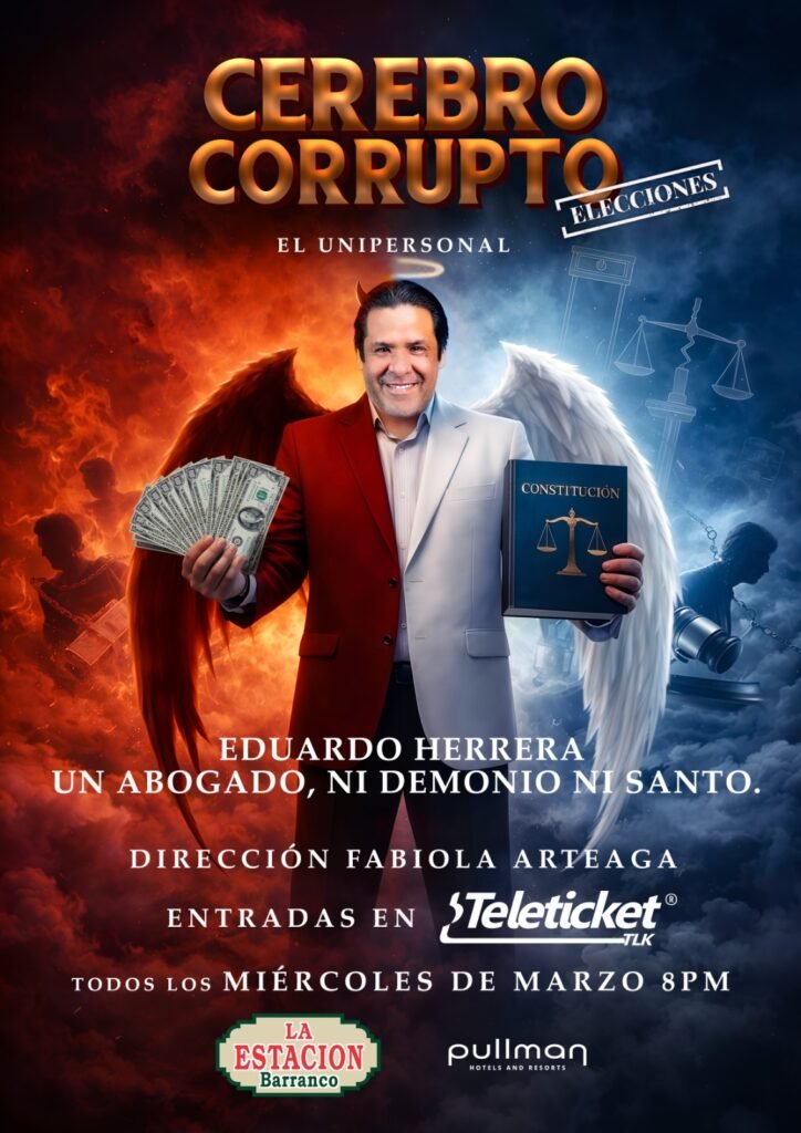 Bajo la dirección de Fabiola Arteaga, el show trasciende el stand-up convencional para convertirse en una puesta en escena integral. Herrera, autor del best-seller «El Cerebro Corrupto», utiliza su experiencia de más de 20 años en los pasillos judiciales para revelar cómo funciona la mente de quienes buscan el poder a cualquier costo.